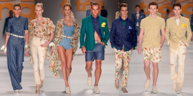 TNG - O jeans é o carro chefe da marca, que estava presente em várias lavagens e texturas não apenas nas calças, mas em outras peças, contrastando com tons candys como azul e areia
