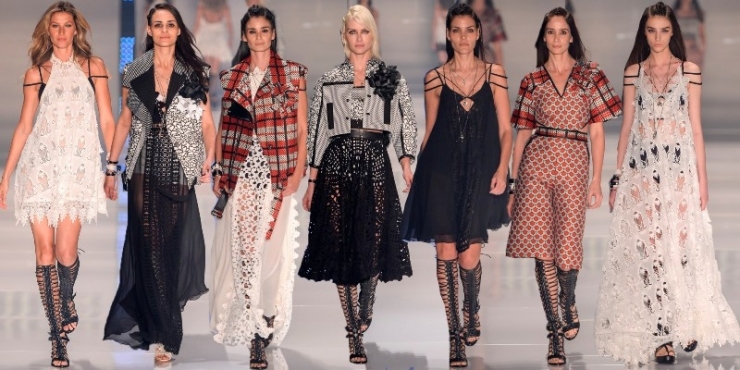 Colcci - O assunto do desfile era a despedida da über model Gisele Bündchen, que estava deslumbrante (como sempre)! A marca apresentou uma coleção à altura do acontecimento, se mostrando mais “madura” e feminina, que íam muito além do jeans na coleção “Flower Punk”